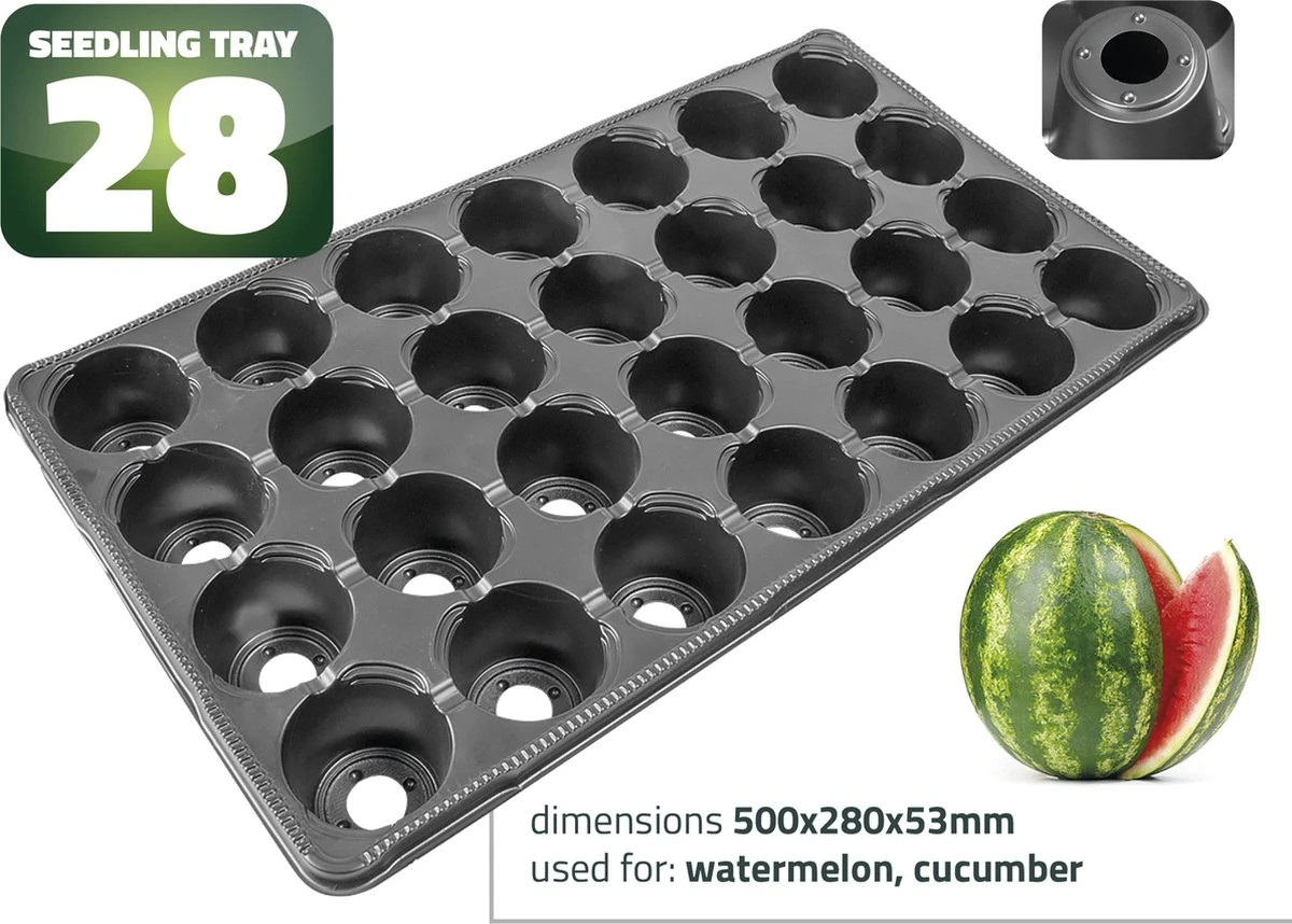 De kweekplaten of zaaibakken zijn verkrijgbaar in 28,42,50,66, 72, 104, 160, 230 vakjes