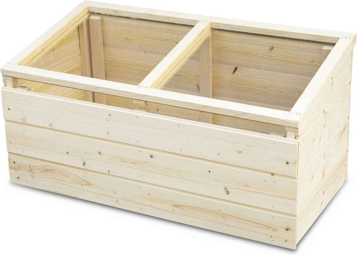 Deze moestuinbak is erg nuttig omdat het acryldeksel kunt neerklappen tijdens de koude seizoenen.