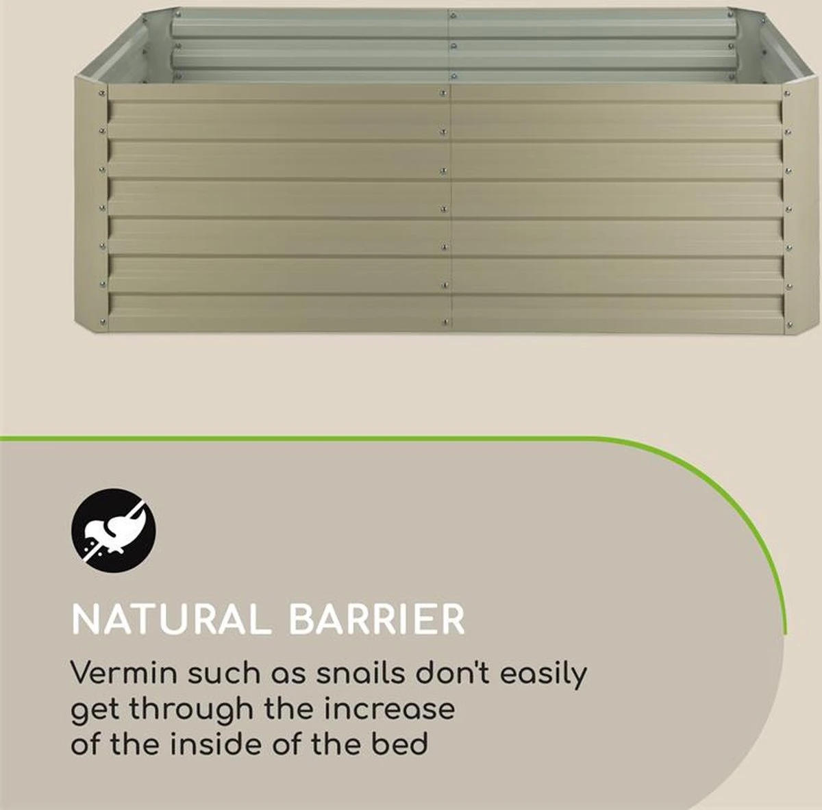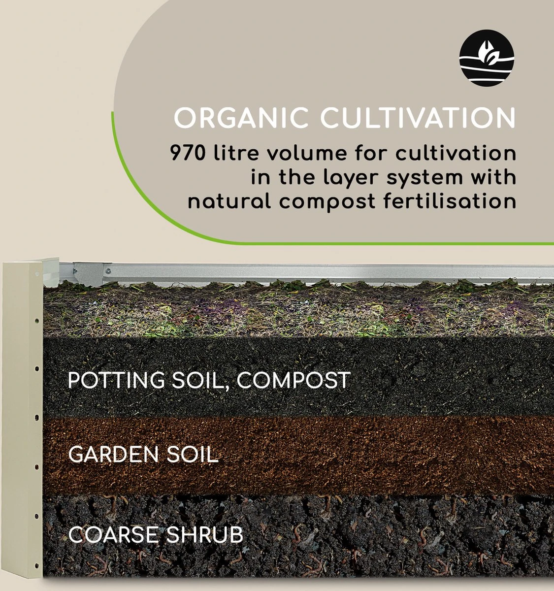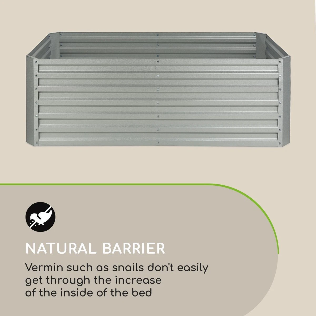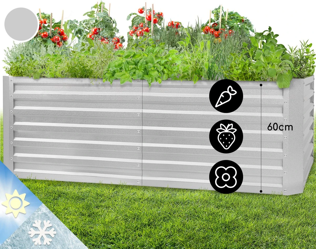 Sappige tomaten, zoete aardbeien, knapperige courgettes en aromatische kruiden laten zich, dankzij de optimale groeiomstandigheden, spelenderwijs opkweken. Zowel voor éénjarig als vaste plantenplezier: Het stabiele frame van de plantenbak is van golfplaatstaal en voorzien van een speciale, 120 g/m2 zink-aluminium weather shield coating die hem weerbestendig maakt. Zo trotseert de High Grow Straight het gehele jaar weer en wind.