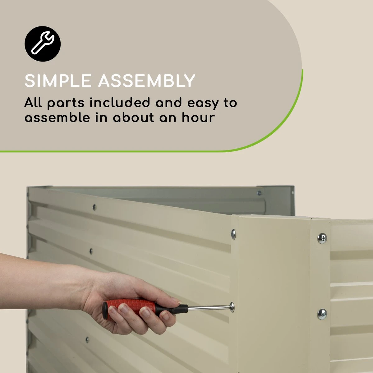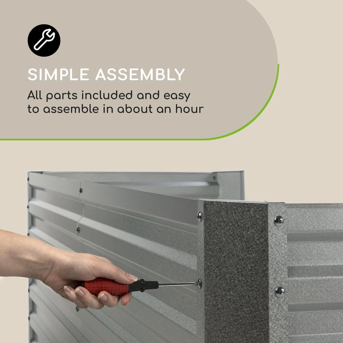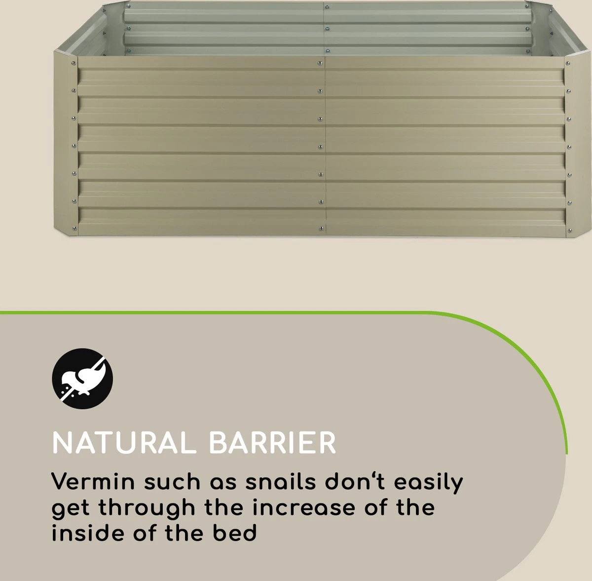 Sappige tomaten, zoete aardbeien, knapperige courgettes en aromatische kruiden laten zich, dankzij de optimale groeiomstandigheden, spelenderwijs opkweken. Zowel voor éénjarig als vaste plantenplezier: Het stabiele frame van de plantenbak is van golfplaatstaal en voorzien van een speciale, 120 g/m2 zink-aluminium weather shield coating die hem weerbestendig maakt. Zo trotseert de High Grow Straight het gehele jaar weer en wind.