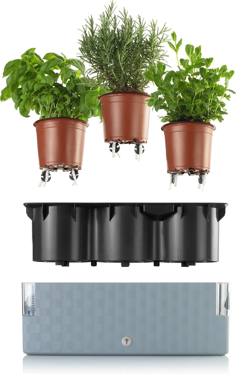 CobbleTrio staalblauw – Design kruidenpot met irrigatiesysteem.