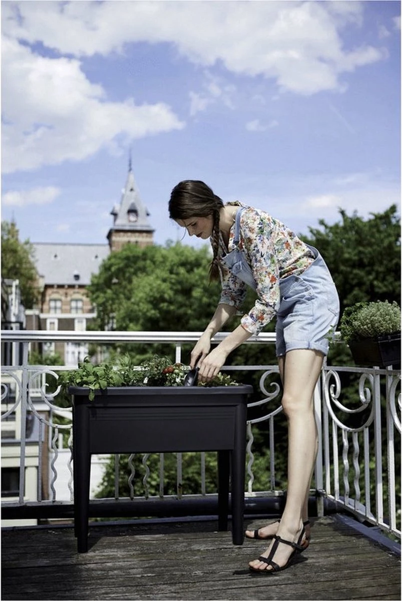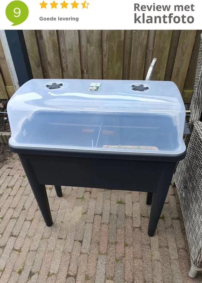 Kweek nu je eigen groente of fruit buiten op je balkon, terras of tuin. Met deze handige kweektafel kweek je op ideale werkhoogte stekjes uit tot grotere groente, fruitplanten en kruiden. Of het nu tomatenplanten zijn, sla of basilicum, deze moestuin op poten is groot genoeg om meerdere kruiden en planten in te kweken. Combineer de kweektafel met de kweekhuis van elho voor optimaal groeiresultaat. De kap bevat een ventilatieregelaar aan de bovenzijde. Regel hiermee zelf de temperatuur en luchttoevoer en laat al je planten en kruiden groeien in een mum van tijd. De holle poten hebben een gat onderin, wat ervoor zorgt dat overtollig water wordt afgevoerd. Alle producten uit de green basics collectie van elho zijn gemaakt van gerecycled kunststof. Ze zijn makkelijk te verplaatsen doordat ze licht in gewicht zijn. De UV-filter zorgt ervoor dat de tafel ook in de volle zon gezet kan worden zonder dat kleuren vervagen. De elho green basics kweektafel xxl is makkelijk schoon te maken en geschikt voor temperaturen variërend tot -40 Celsius. Geen nood wanneer je de tafel per ongeluk omstoot of laat vallen want de producten uit de gehele elho green basics collectie zijn onbreekbaar.