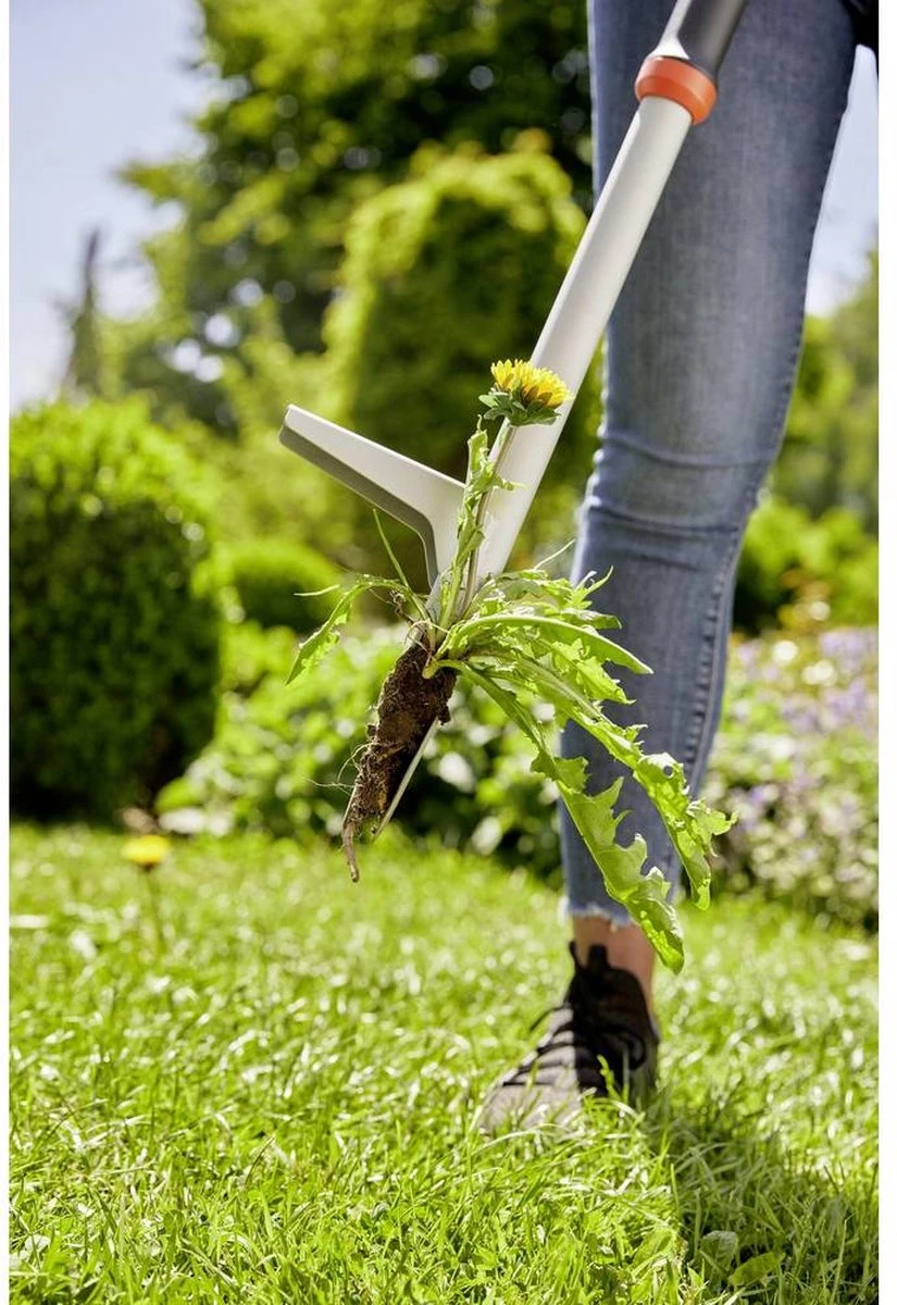 De onkruidsteker van GARDENA is het ideale gereedschap om hinderlijk onkruid in uw gazon en bloembedden effectief te verwijderen. Helaas is regelmatig wieden niet de leukste taak. Met dit wiedgereedschap kunt u echter aangenaam eenvoudig en effectief wieden zonder het milieu te vervuilen. De gepatenteerde bladen van de onkruidsteker zijn dicht bij elkaar geplaatst en erg smal. Dit ontwerp is zeer geschikt voor het lostrekken van paardenbloemen in uw gazon. U kunt precies werken, wat gunstig is voor uw gazon omdat het gereedschap alleen kleine gaten maakt. Werken met de praktische onkruidsteker van GARDENA is aangenaam en zacht voor uw rug, zelfs gedurende langere tijd. Het gereedschap heeft een praktische voetsteun aan de onderkant, waardoor het gemakkelijker is om in de grond te graven. Een speciaal gevormde handgreep zorgt voor een comfortabele beweging bij het draaien van het wiedblad. Het geïntegreerde ontgrendelingsmechanisme maakt het gemakkelijker om onkruid naar buiten te werken. Deze methode van wieden werkt puur mechanisch en zonder chemicaliën, waardoor uw geliefde flora en fauna worden beschermd en u toch een prachtige, goed verzorgde tuin zonder paardenbloemen en ander onkruid krijgt. Daarnaast biedt GARDENA een garantie van 25 jaar op de onkruidsteker.