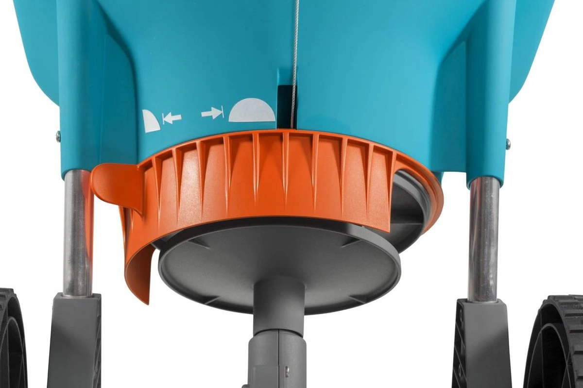 De GARDENA Strooiwagen XL is speciaal bedoeld voor het zaaien en bemesten van grotere oppervlakken. Door het instelbare strooimechanisme is de strooiwagen zo af te stellen dat hij precies tot aan de rand van het gazon strooit. De strooischijf verdeelt het strooigoed netjes en zeer gelijkmatig. De strooiwagen kan eenvoudig met water worden gereinigd.