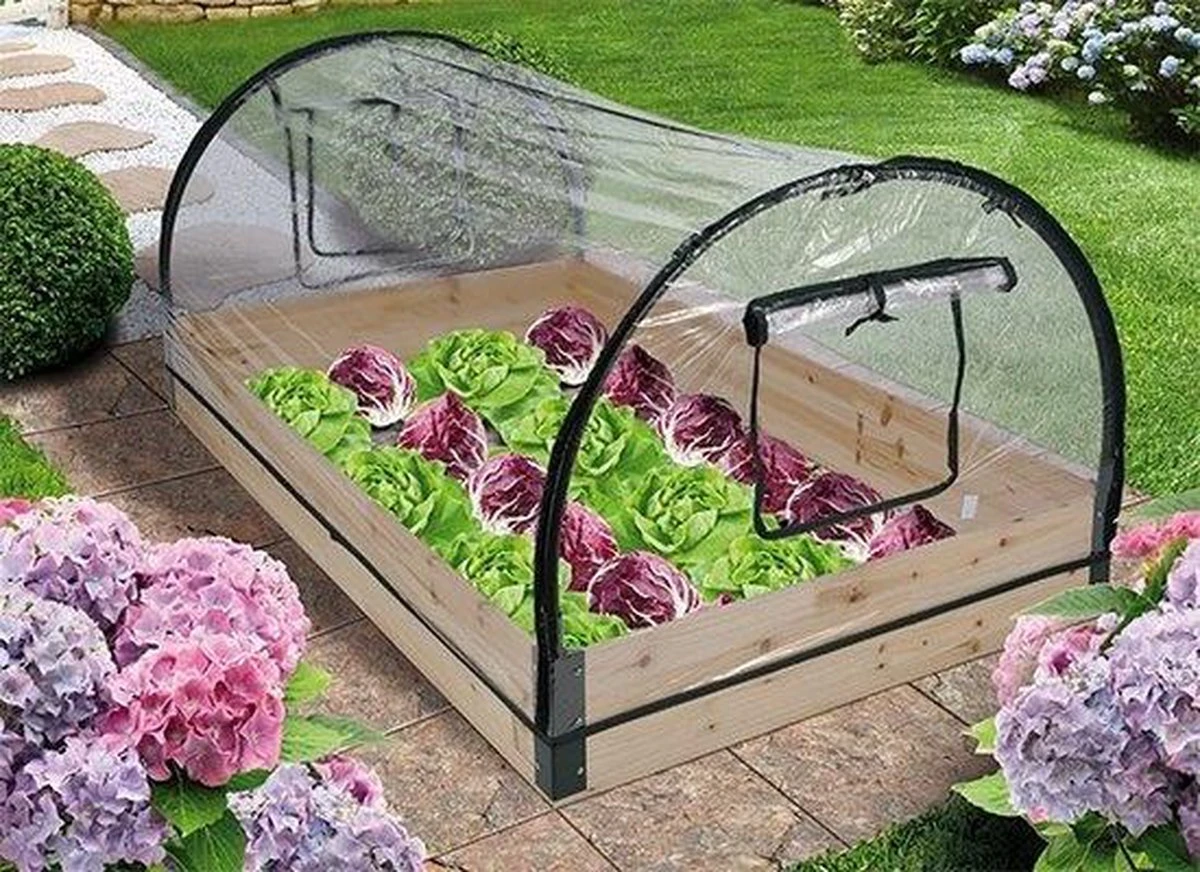 De bekleding is gemaakt van PVC en hij biedt jonge en tere planten ideale bescherming tegen weersomstandigheden. Bovendien houdt hij de warmte vast zodat planten optimaal kunnen groeien. Het hout met stalen frame, gecombineerd met de weerbestendige bekleding, maken de broeikas enorm sterk en duurzaam. Ook kun je de binnenwarmte op hete en zonnige dagen regelen met de 2 geïntegreerde ramen.