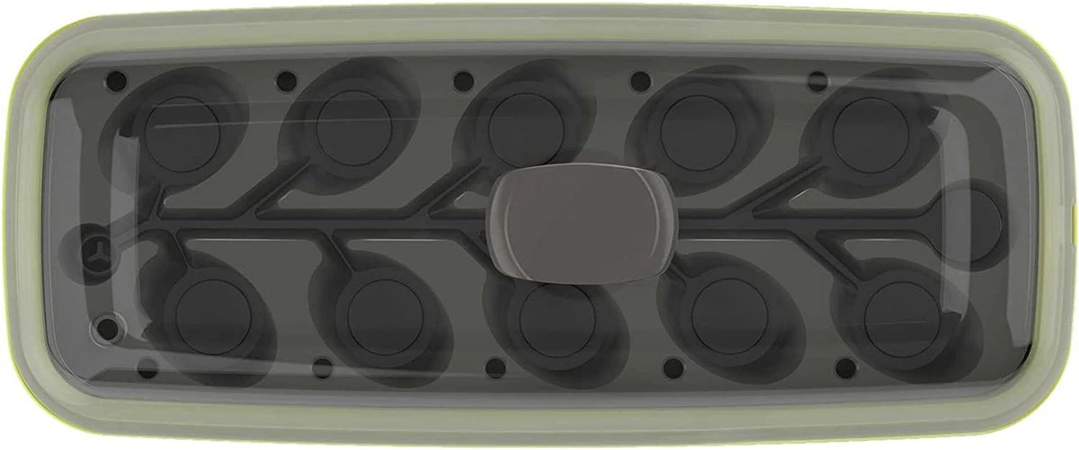 De kweekkas heeft een breukvast deksel in polycarbonaat en binnenin biedt een uitneembare tray plaats aan 10 kokos- of turftabletten met de ideale tussenruimte voor de zaailingen. Een intelligent drainagesysteem zorgt voor een optimale bewatering. Het deksel is tevens voorzien van ventilatie voor een goede verluchting.