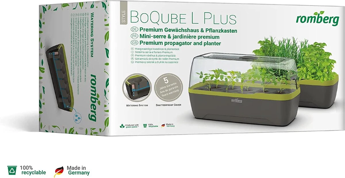 De BoQube binnenkas van Romberg oogt bijzonder stijlvol en daarnaast is het ook nog eens heel functioneel. De mini kweekkas is geschikt voor binnen- en buitengebruik en biedt plaats aan 10 zweltabletten of 4 planten. Een absolute must-have voor mensen met groene vingers.