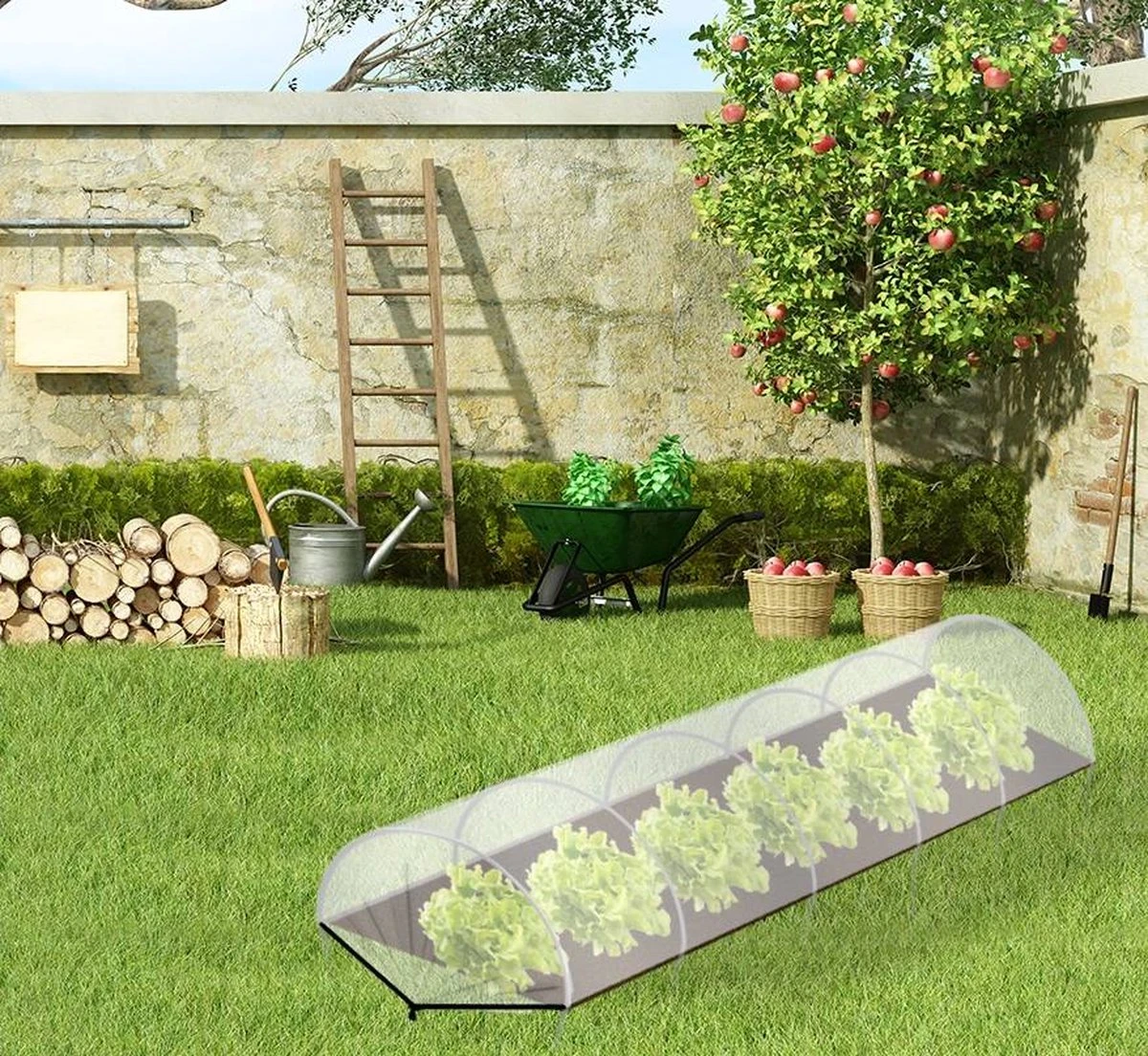- BESCHERMING VAN ZADEN EN PLANTEN – de structuur kan worden gebruikt om zaden, groenten, fruit en bloemen te beschermen tegen wind en vorst. De strak aan de structuur bevestigde folie slaat warmte op en vermindert de effecten van weersinvloeden . Het is de positieve temperatuur van de grond en de lucht die ervoor zorgt dat de planten onder dekking eerder beginnen te groeien.