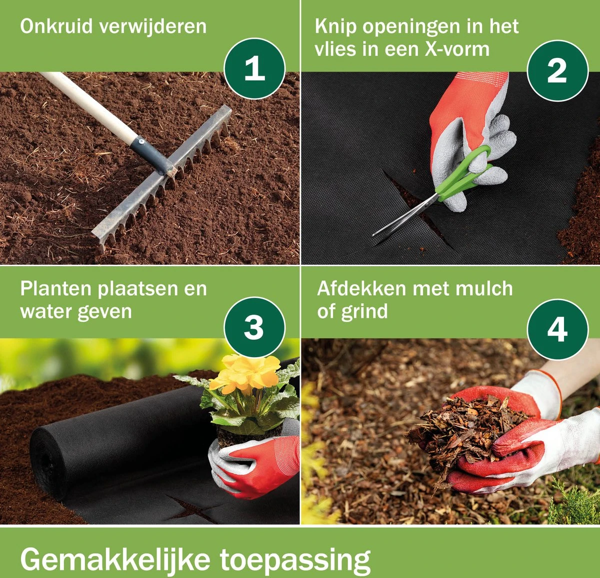 - EENVOUDIG TE GEBRUIKEN – Het anti-onkruidvlies is 100% recycleerbaar. U kunt het onkruidbestrijding doek gemakkelijk op maat knippen en leggen. Voor meer stabiliteit en houvast op de grond of in het perk, kunt u het doek bedekken met grind, schorssnippers, potgrond of zand.