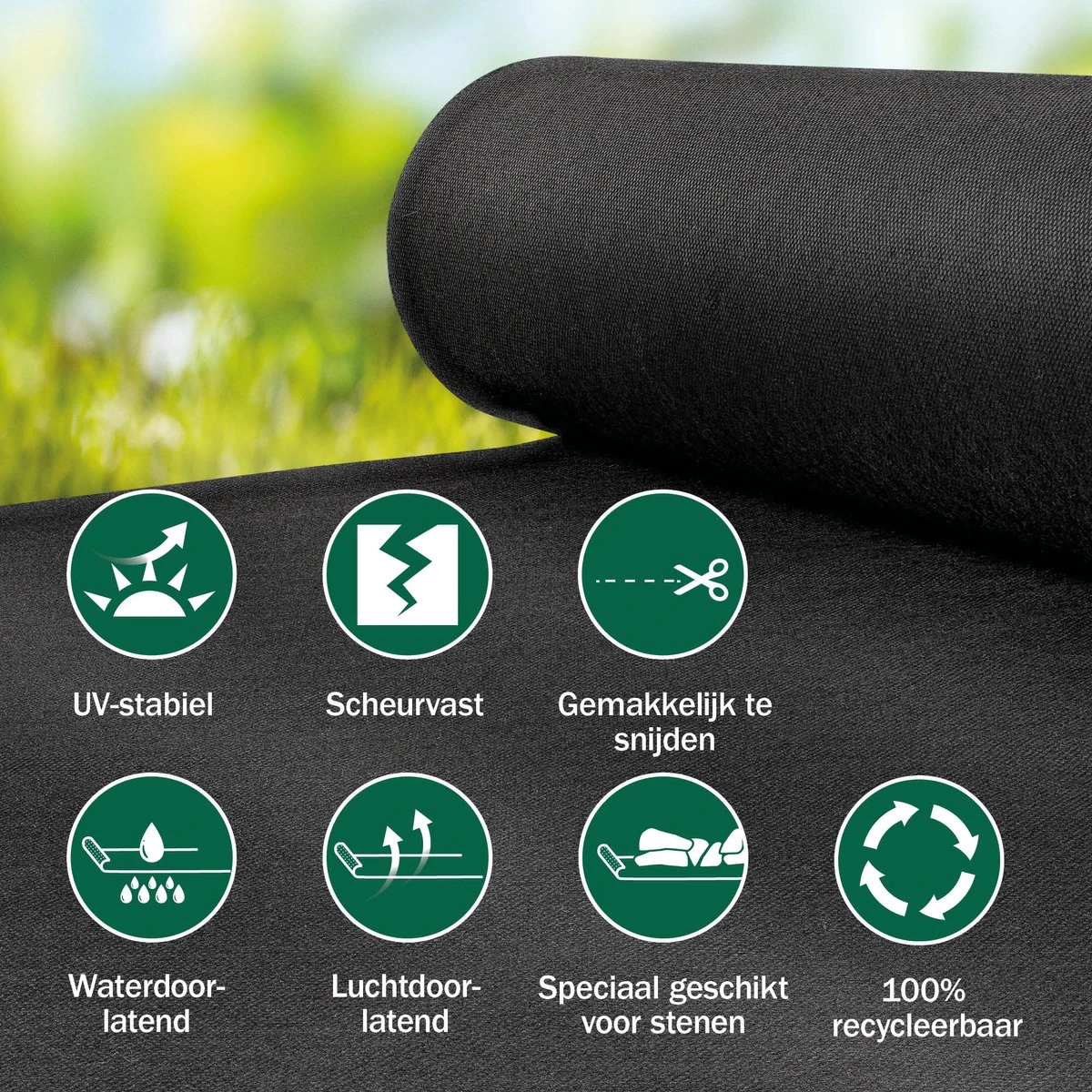 - ANTI-ONKRUIDDOEK – Natuurlijke onkruidbestrijding met zwart onkruidvlies. Dankzij de viltachtige structuur biedt de het onkruiddoek gemaakt van polypropyleen een betrouwbare UV-bescherming en voorkomt tegelijkertijd dat wortels doorgroeien. Het vlies heeft een gewicht per oppervlakte-eenheid van 50 g/m2, is bijzonder sterk en wordt geleverd zonder sluiting.