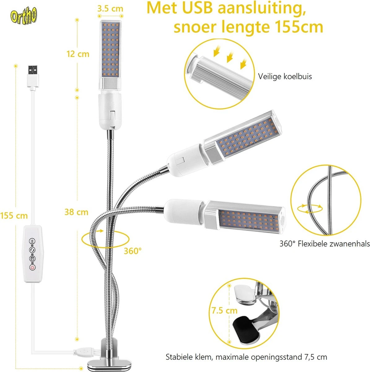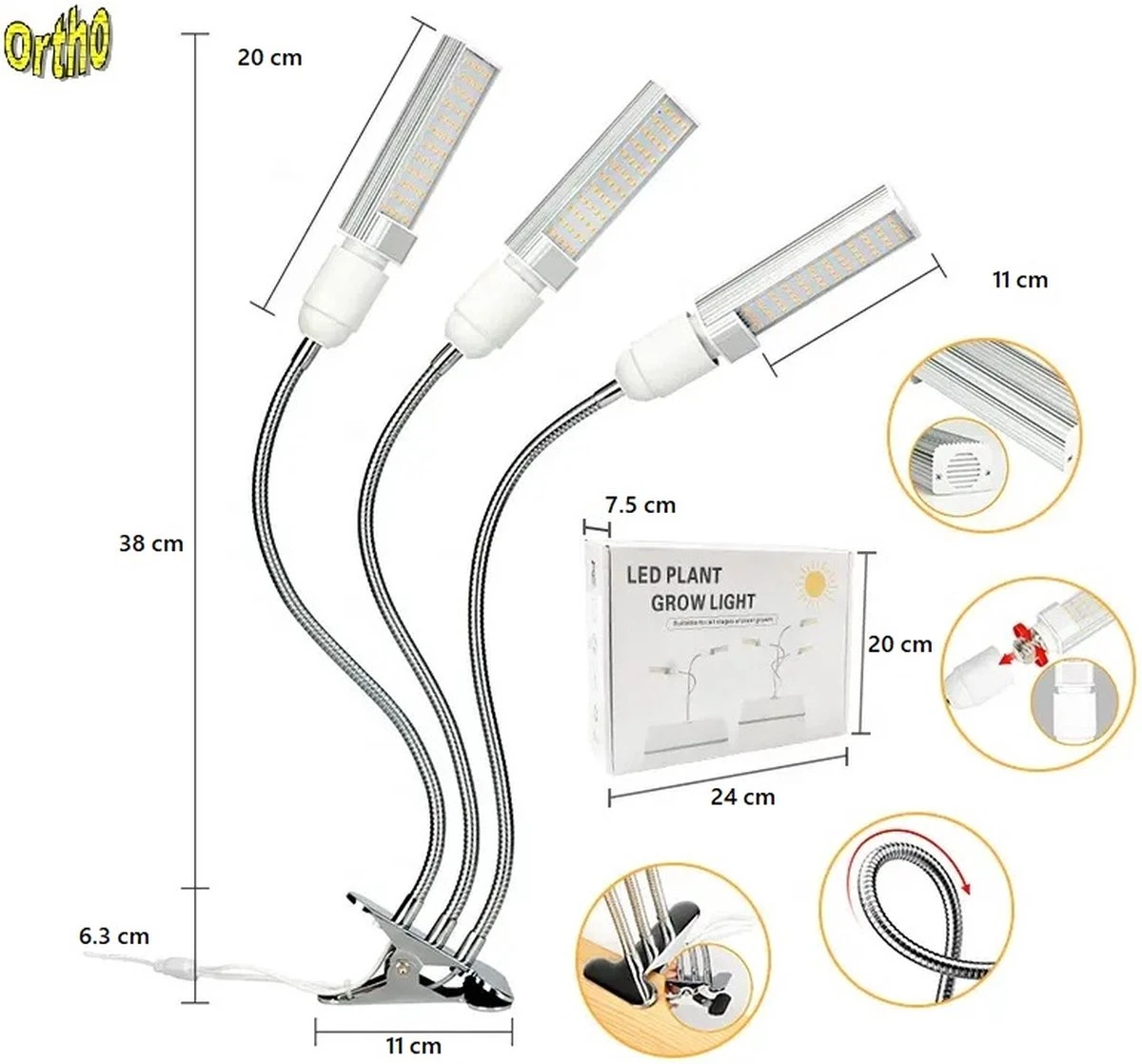 U heeft met een stralingshoek van 120°, en door de flexibele zwanenhals die 360° kan draaien, altijd het licht op uw planten gericht en dat bevorderd de groei.