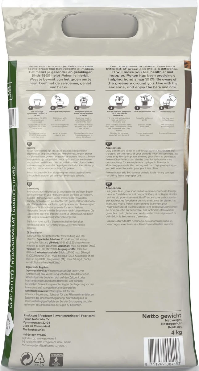 Deze hydrokorrels, ofwel kleikorrels, gebruik je als bodembasis in plantenbakken en bloempotten. Daarbovenop komt vervolgens de potgrond of tuinaarde. Hierdoor hebben wortels ruimte houvast en zorg je voor goede afwatering / drainage