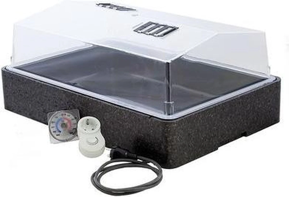 Door de goede isolatie en het zware verwarmingssysteem is dit kweeksysteem bij uitstek geschikt voor het snel en gezond opkweken van moeilijk ontkiembare zaden en stekken, zowel bij lage als hoge omgevingstemperaturen. De glashelder transparante deksel zorgt voor de best mogelijke lichtinval en de ontluchtingsschuiven geven extra controle over luchtvochtigheid en temperatuur. Het sterke verwarmingssysteem maakt bodemtemperaturen mogelijk tot “omgevingstemperatuur +30 graden Celsius”. Mede door de isolerende buitenbak is er bij kweken in een koude kas bij 0 graden Celsius nog een bodemtemperatuur mogelijk tot 25-30 graden Celsius.