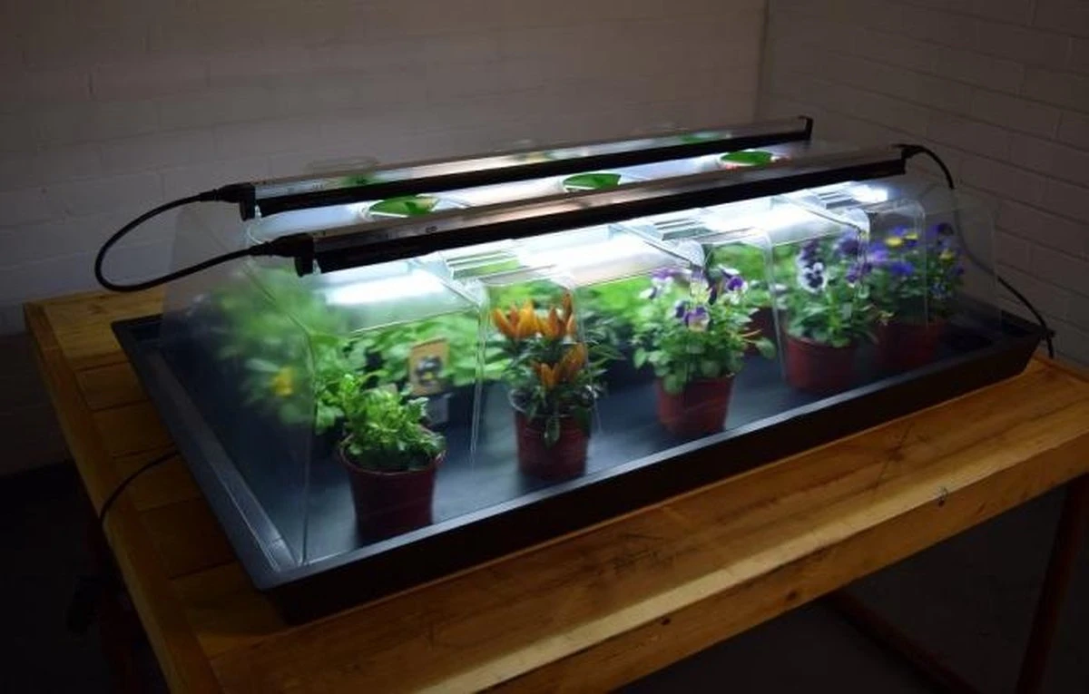 Deze propagator heeft geïntegreerde lichten voor sterkere groei. De groeilampen 90 cm SUNBLASTER T5HO 24W(L)/39W(XL) 6400K rusten in de gleuven van het deksel. Je kunt de propagator instellen van 5°C tot 30°C. Deze propagator is door het programma BBC Gardeners World verkozen tot beste propagator.