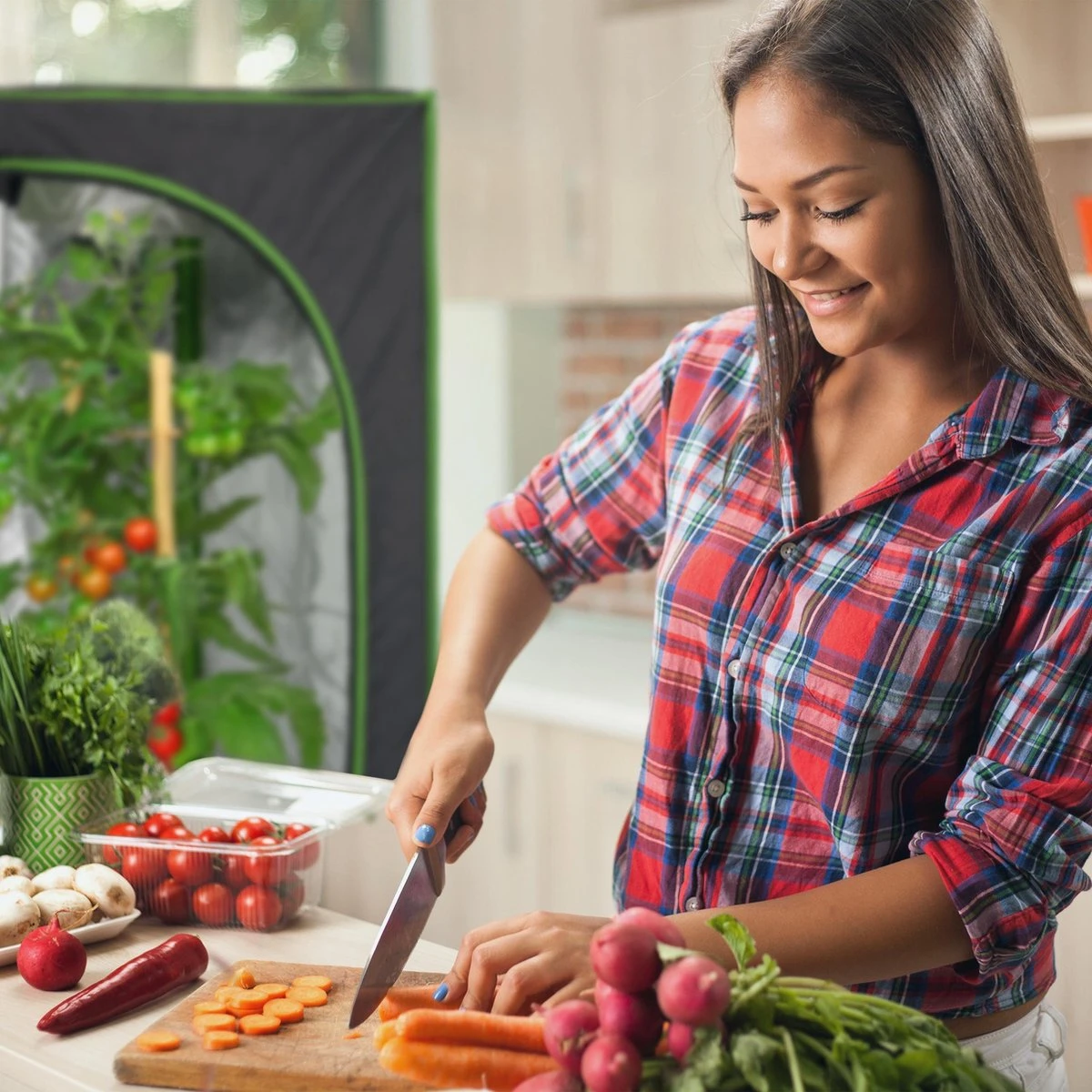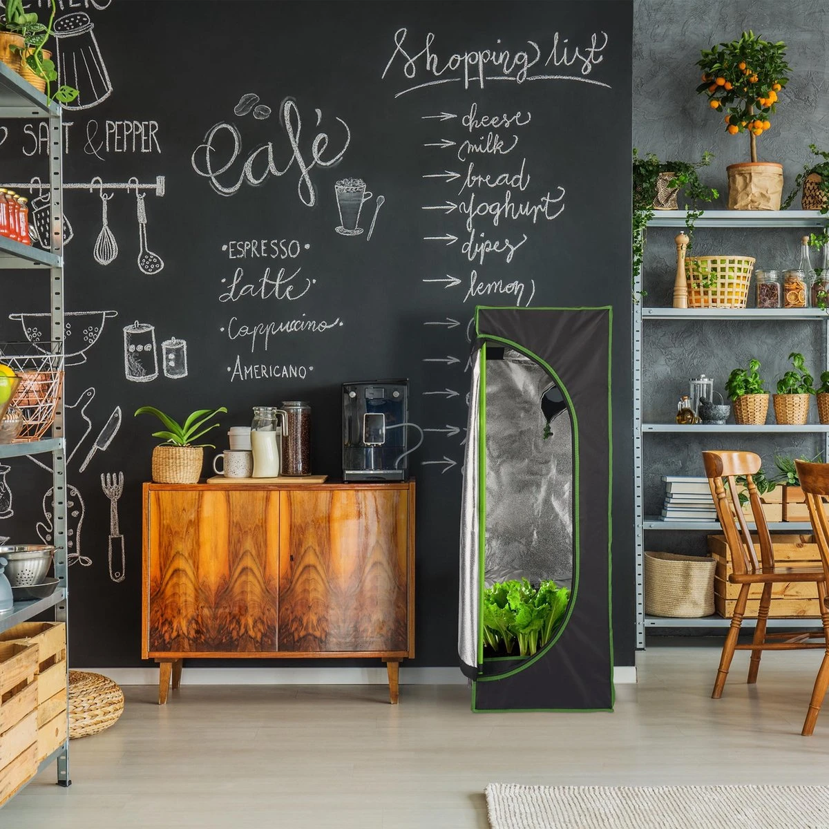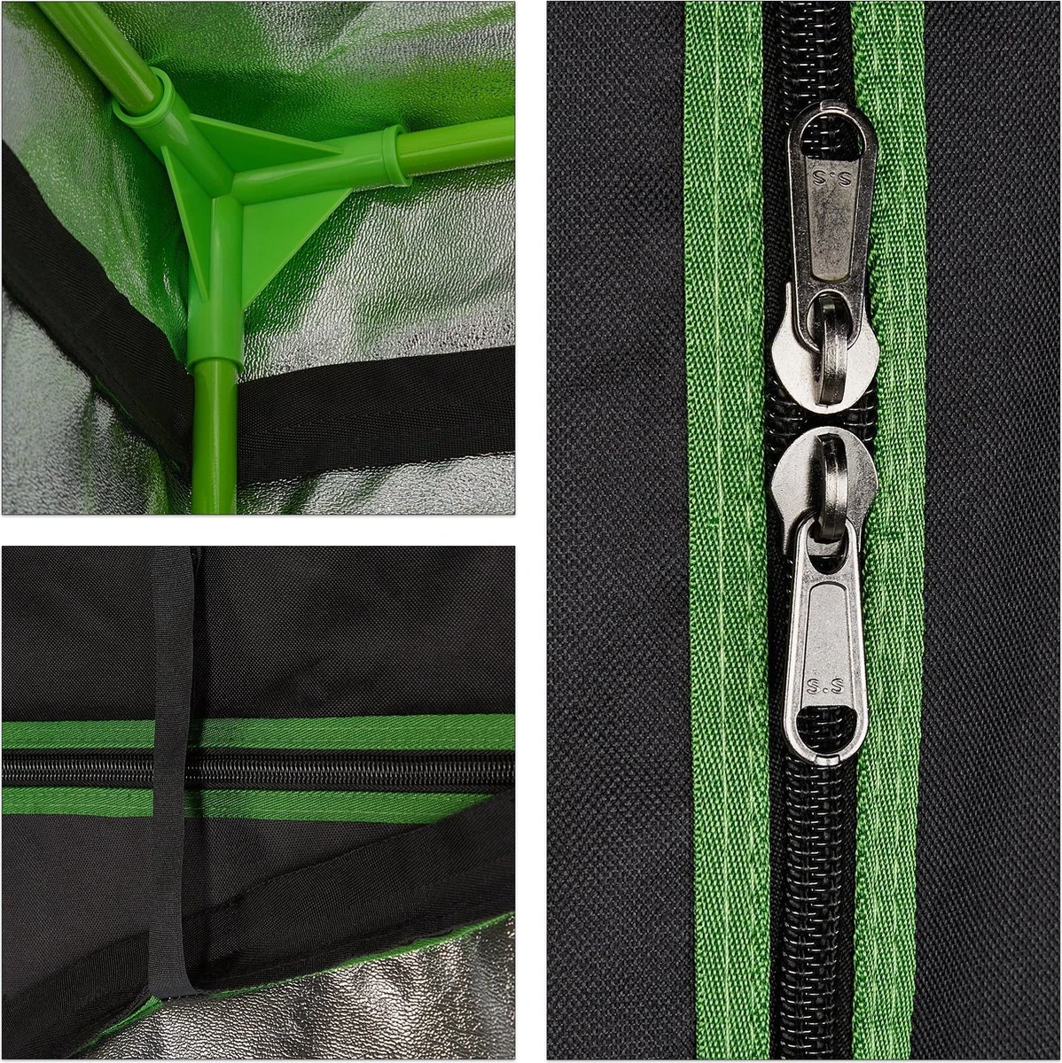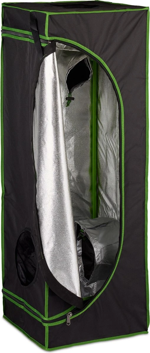 Met deze growtent worden het kweken in huis echt makkelijk gemaakt. De tot 99.9% lichtdichte en vochtresistente stof is bekleed meet een reflecterende folie, welke tot 95% van het licht reflecteert. Hierdoor wordt de groei van groente, kruiden, fruit en meer bevordert. 4 gaatjes met bandjes maakt het mogelijk om ventilatie, lampen en andere accessoires te installeren. Door een af te dekken raampje kan je zonder veel moeite even naar de stekken kijken.
