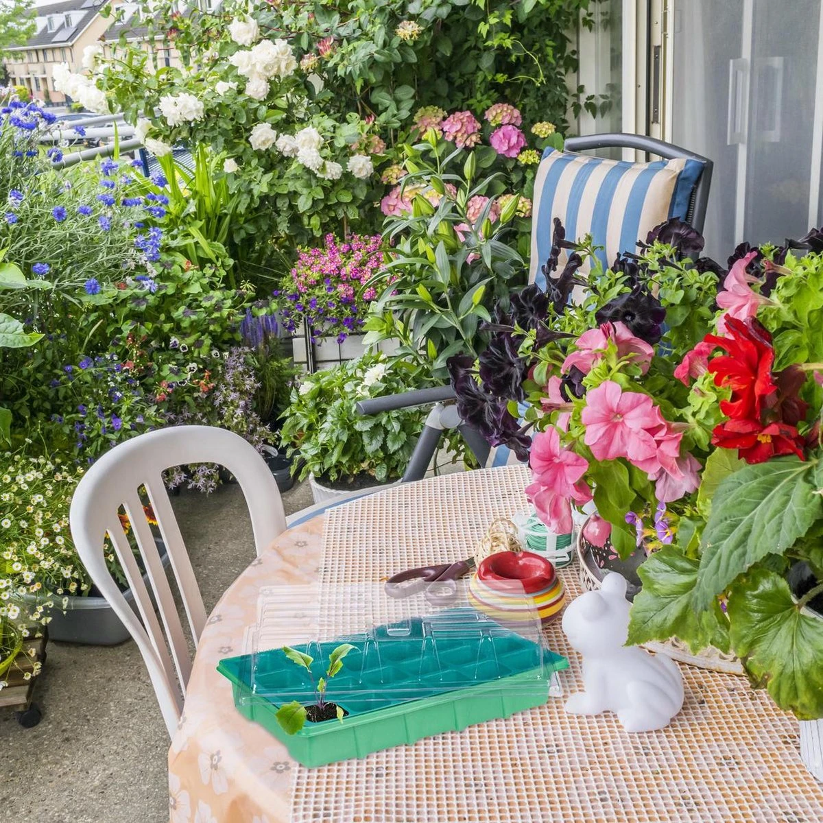 – Voor balkon, terras of vensterbank