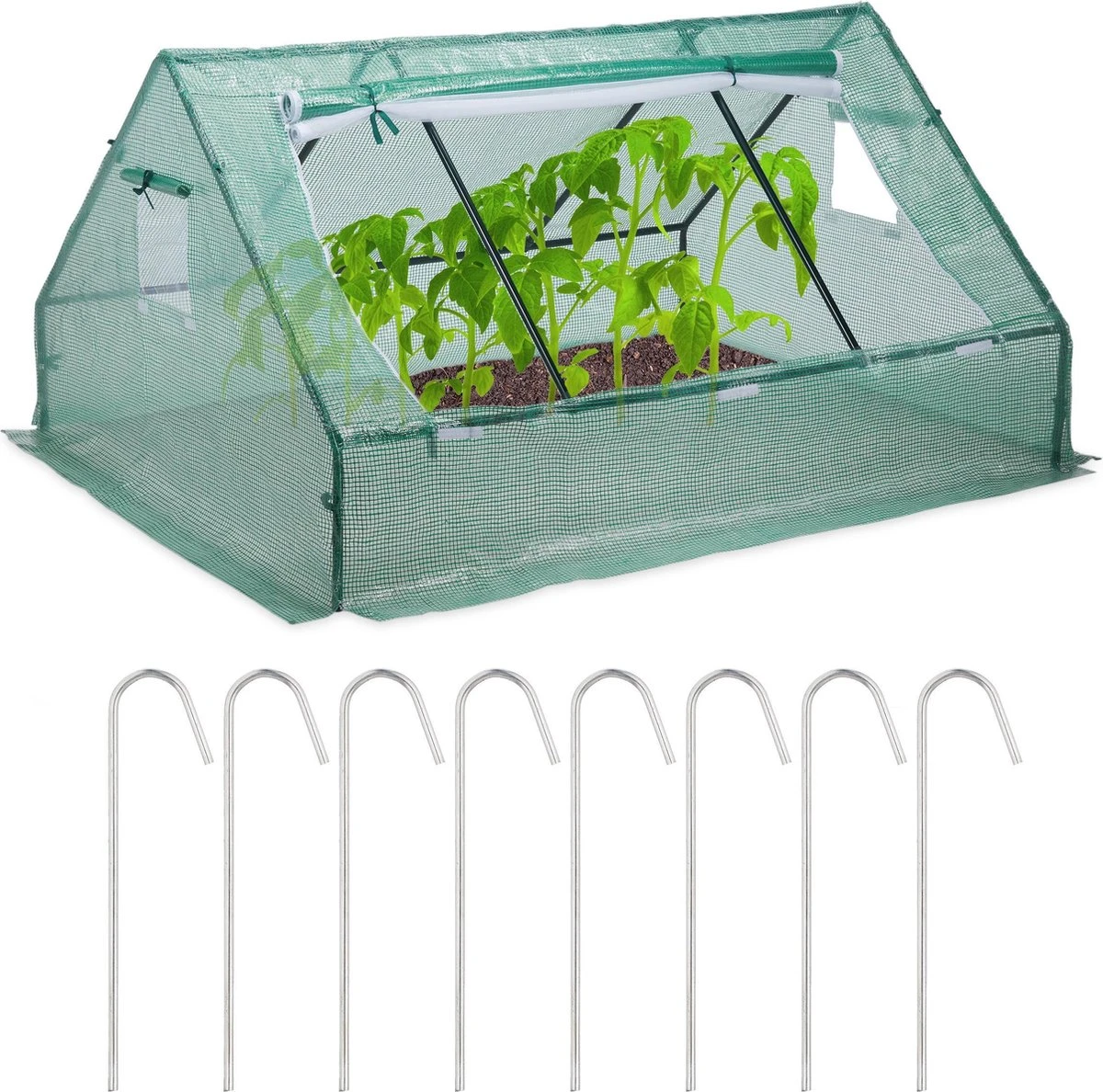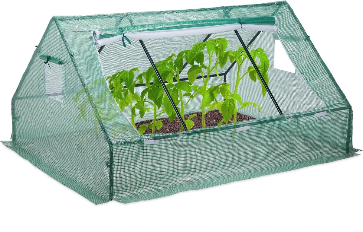 Bescherm je groente en andere planten tegen regen, schadelijke en te sterke zonnestralen in de ruime kweektent. Op een oppervlak van 180 x 150 cm kan je je tuinkunsten bewijzen – door het grote raam kan je eenvoudig bij de planten. De foliekas is niet hoog, waardoor het in de tuin niet te veel ruimte en licht wegneemt. Voor het opbouwen is dankzij het handige steeksysteem geen gereedschap nodig en hierdoor staat je eigen teelt staat zo niets meer in de weg.
