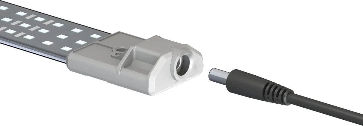 De standaard stroomaansluiting DC plug 5,5*2,1 x 10 mm , waarvan de aansluiting waterdicht wordt afgedicht door de toevoeging van een lip tijdens het gietproces, maakt het ook mogelijk alle soorten standaard 24 volt voedingen te gebruiken.
