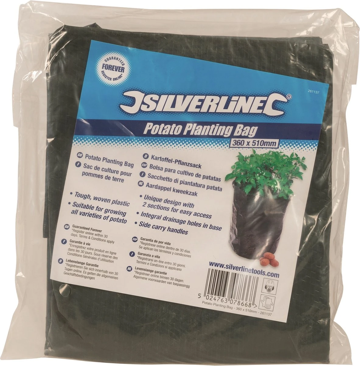 Dubbel gelamineerd, UV-gestabiliseerd, 110 gsm geweven polyethyleen. Geschikt voor het kweken van wortelgroenten, met inbegrip van aardappelen. Wasbaar en herbruikbaar. Verstevigde, roestbestendige drainagegaten. Pop-up tuin voor balkons, patio´s en serres